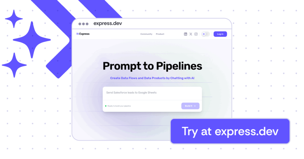 Quickly turn any data variety across apps, APIs, DBs, and files into data products and common data model. Use workflows and any integration style – ELT/ETL, R-ETL, API integration, (S)FTP, streaming, and more – to integrate apps and keep data in sync.