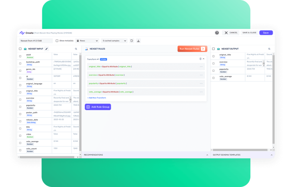 The Nexla Designer also recommends rules at each step based on what data you select and shows you results and errors as you work. Once done, this prepared, ready-to-use data can then be easily delivered to your destination without ever needing to code at all.