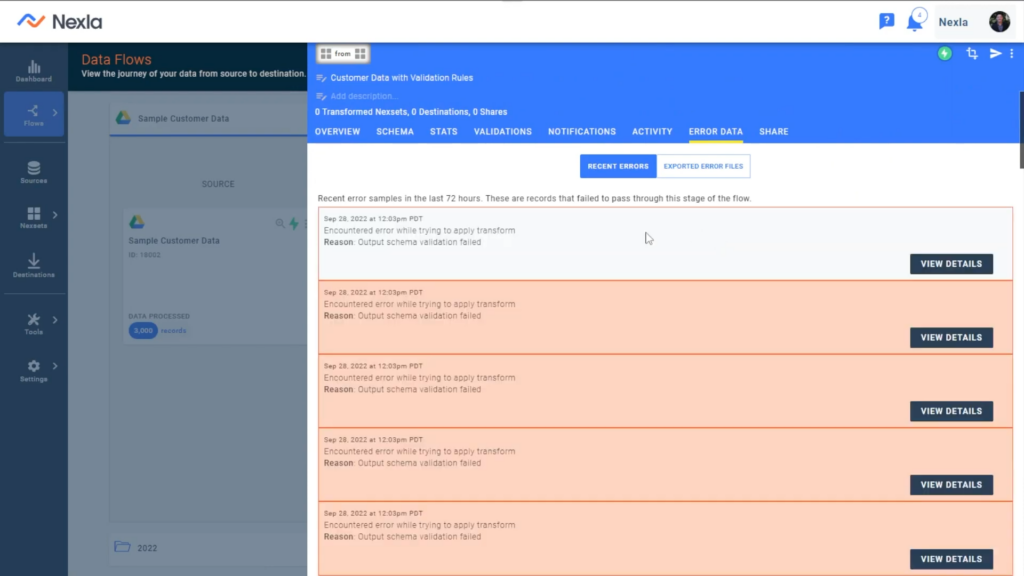 With automatic notification and easy reporting, Nexla makes error management a fast and simple process.